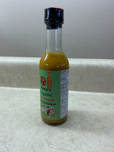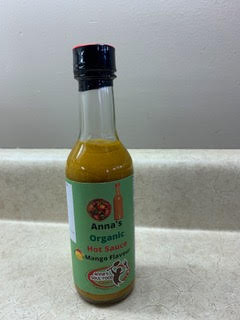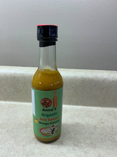 Enjoy our hot sauce-Mango flavour. Made with 100% organic ingredients.